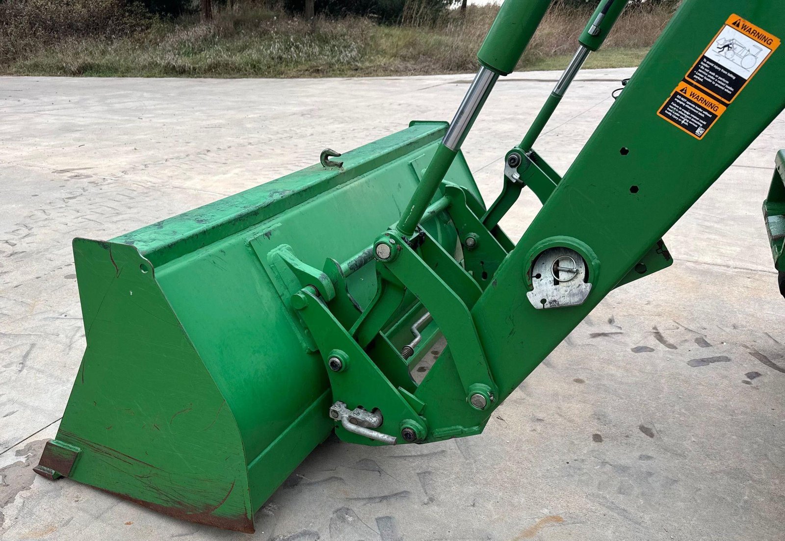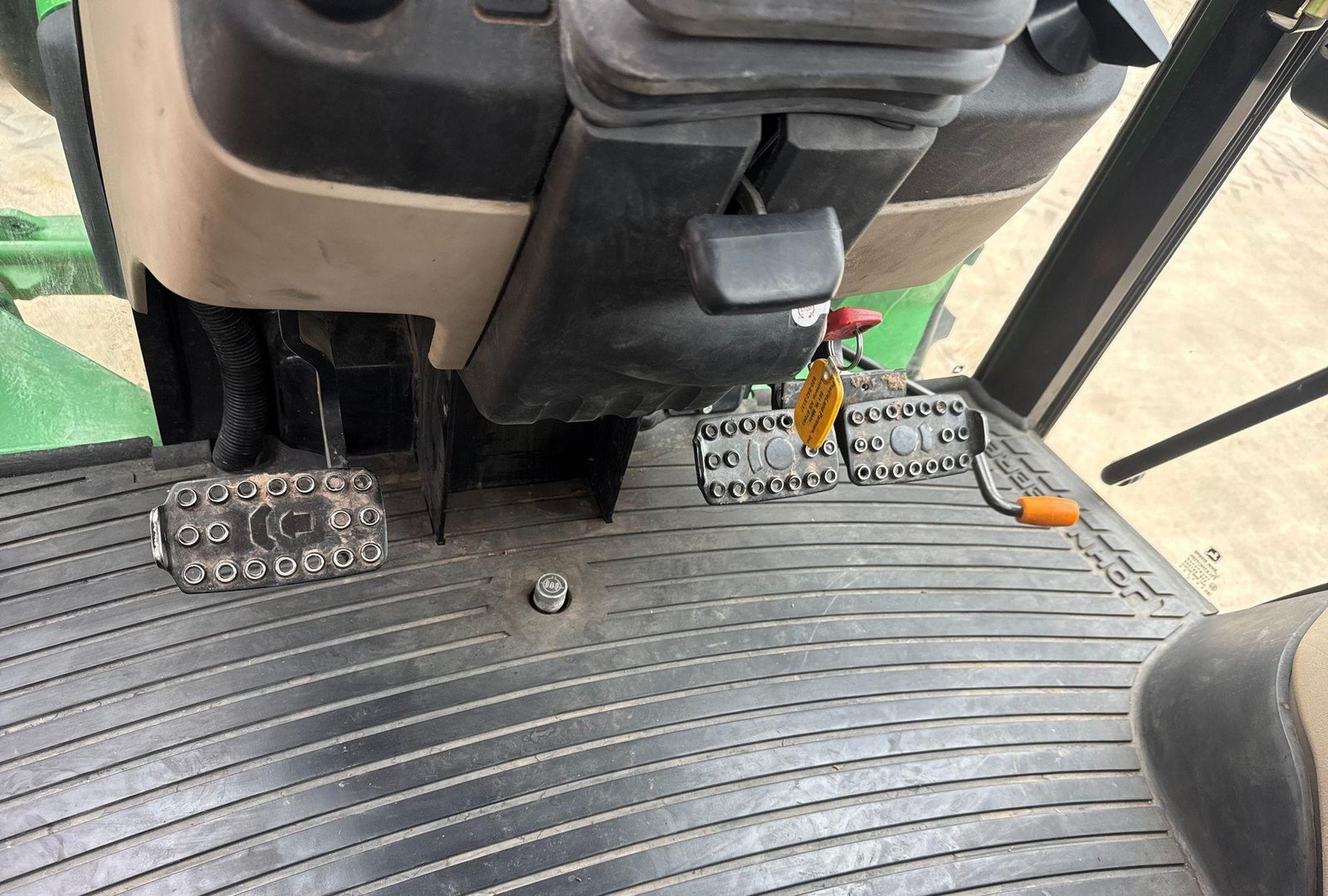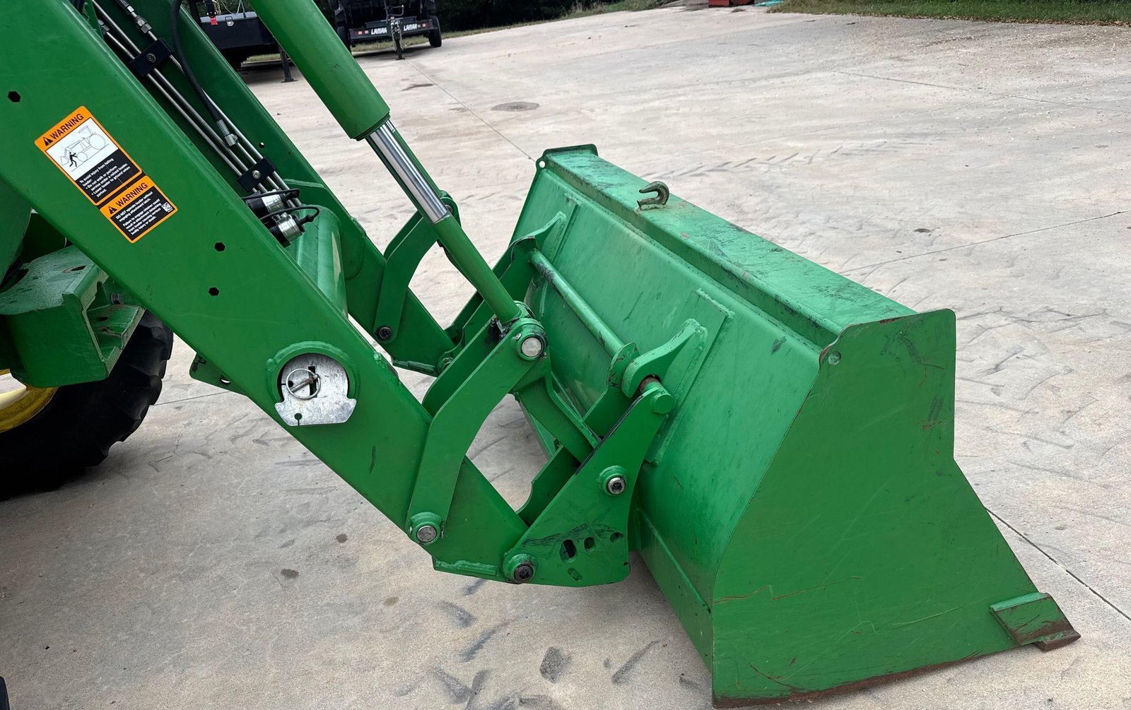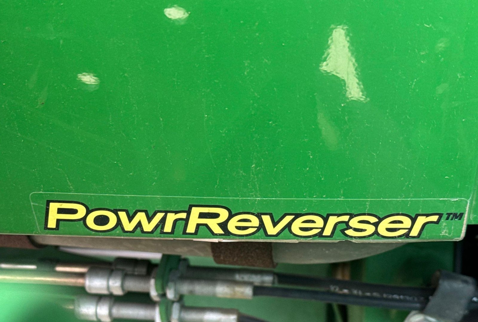 Fitted with a John Deere 563 loader featuring joystick controls and 75″ bucket. Clean, strong tractor ready for field or loader work.