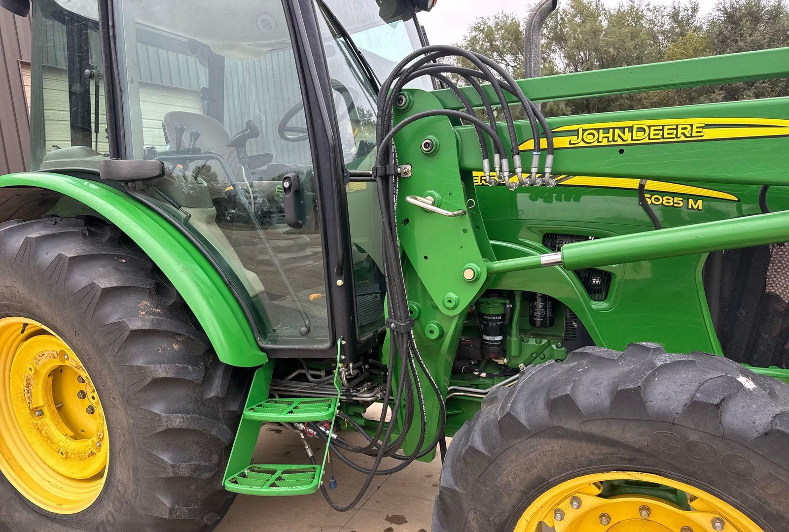 2010 John Deere 5085M MFWD – 877 Hours Well-maintained John Deere 5085M powered by a 4.5L 4-cylinder diesel engine (4045HLV53) and 16F/16R synchro transmission with left-hand reverser. MFWD and differential lock provide reliable traction in demanding conditions. Equipped with dual PTO (540/1000), three-point hitch with top link, seven-pin outlet, 1 front and 3 rear hydraulic remotes. Operator station includes heat and A/C for year-round comfort.