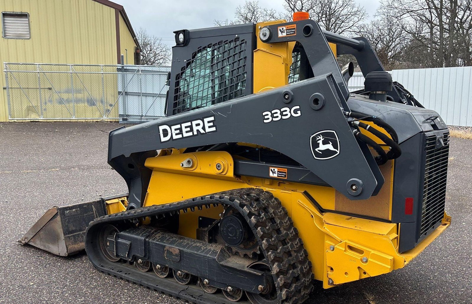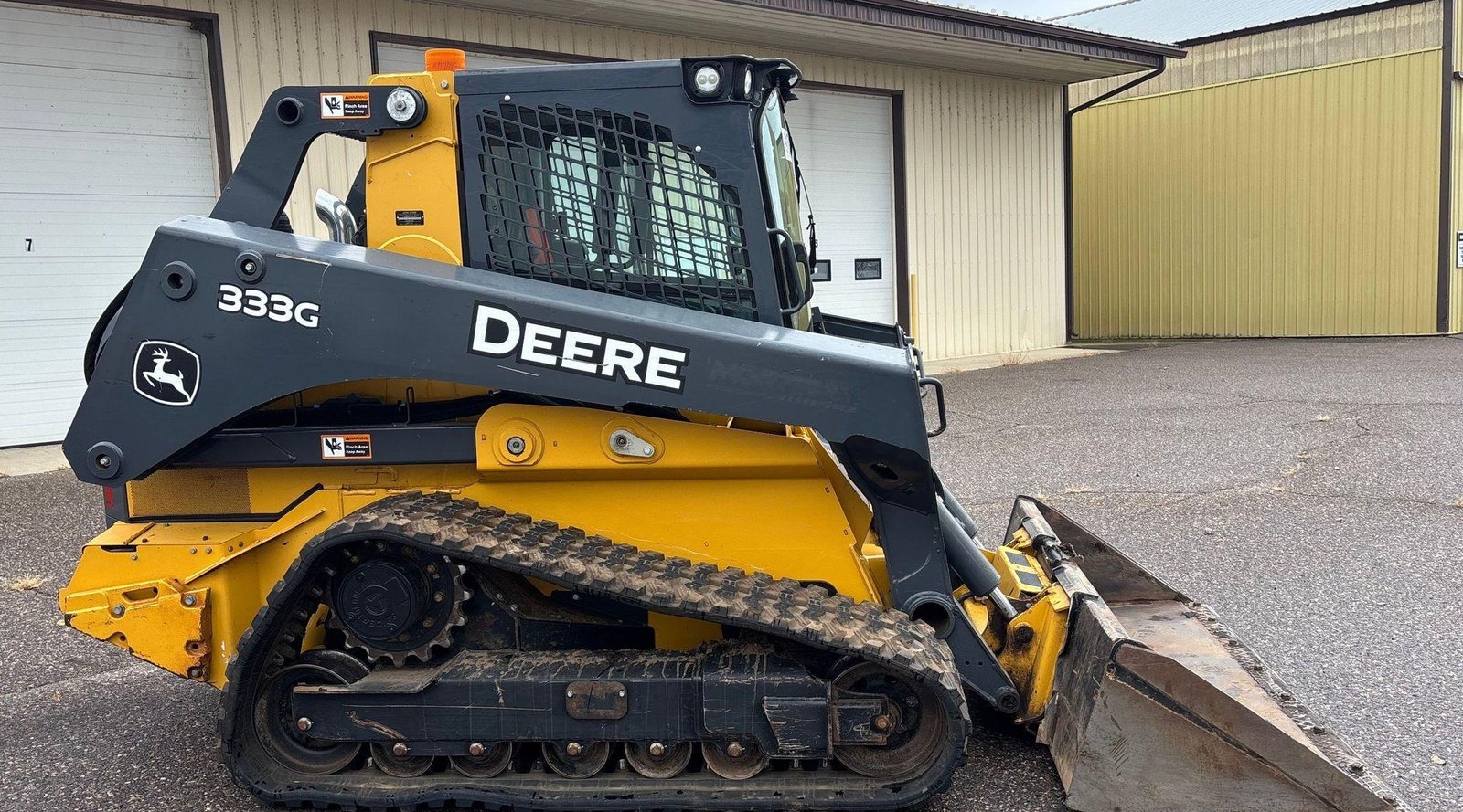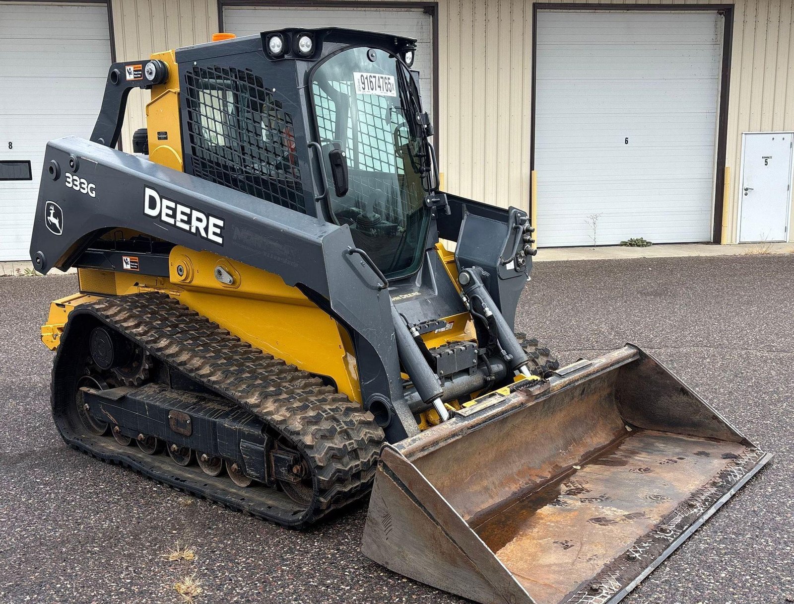 2017 John Deere 333G – 793 Hours Low-hour John Deere 333G powered by a 4-cylinder Yanmar diesel engine with hydrostatic transmission and two-speed travel. Built for strength, stability, and high hydraulic performance.Enclosed OROPS cab with heat & A/C, backup camera, hand controls, pattern changer, and electronic monitoring system for precise operation. Equipped with auxiliary hydraulics, auxiliary electrical outlet, hydraulic quick coupler, and counterweights.