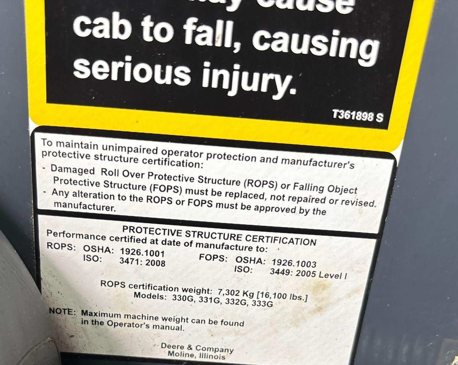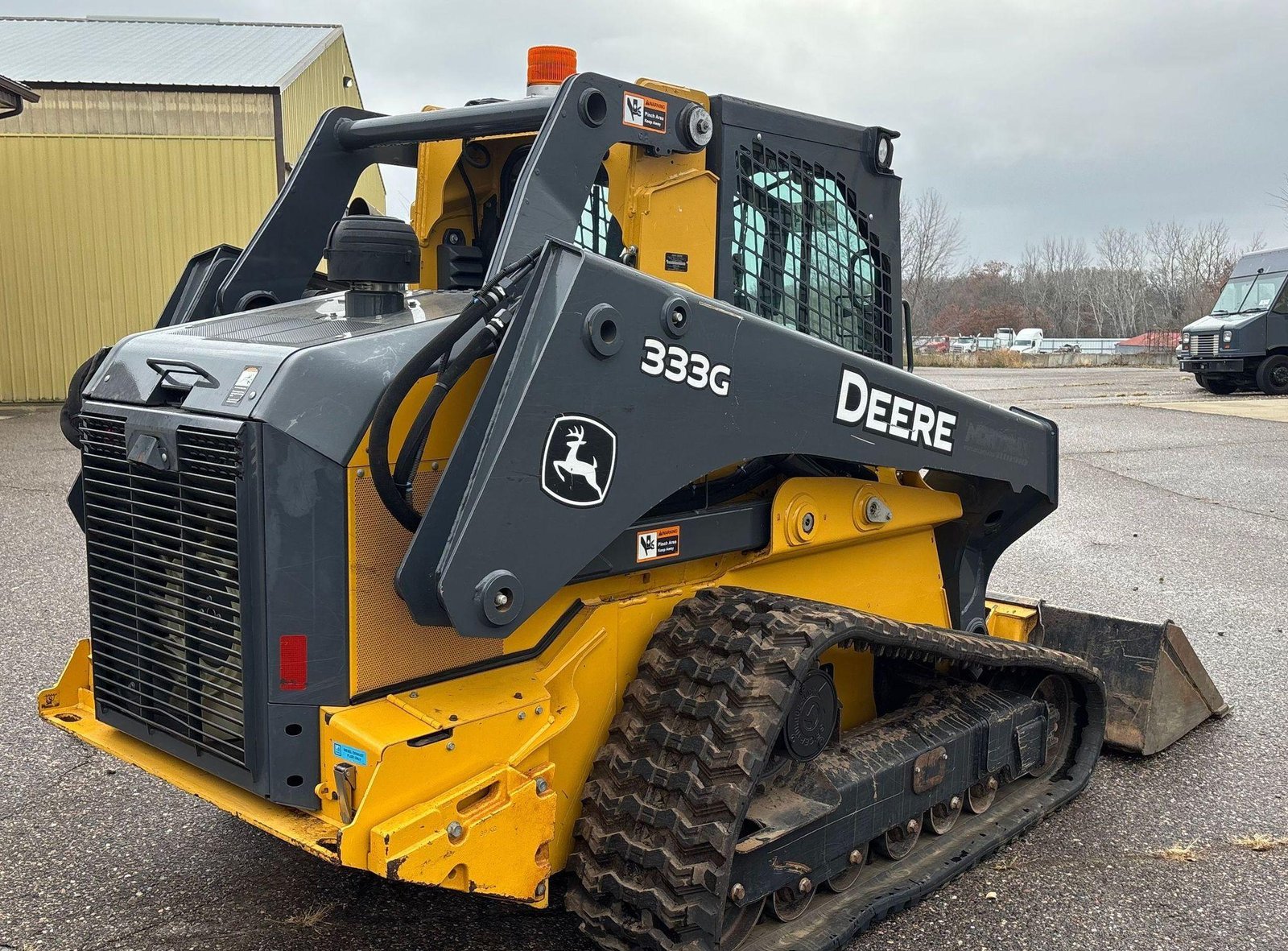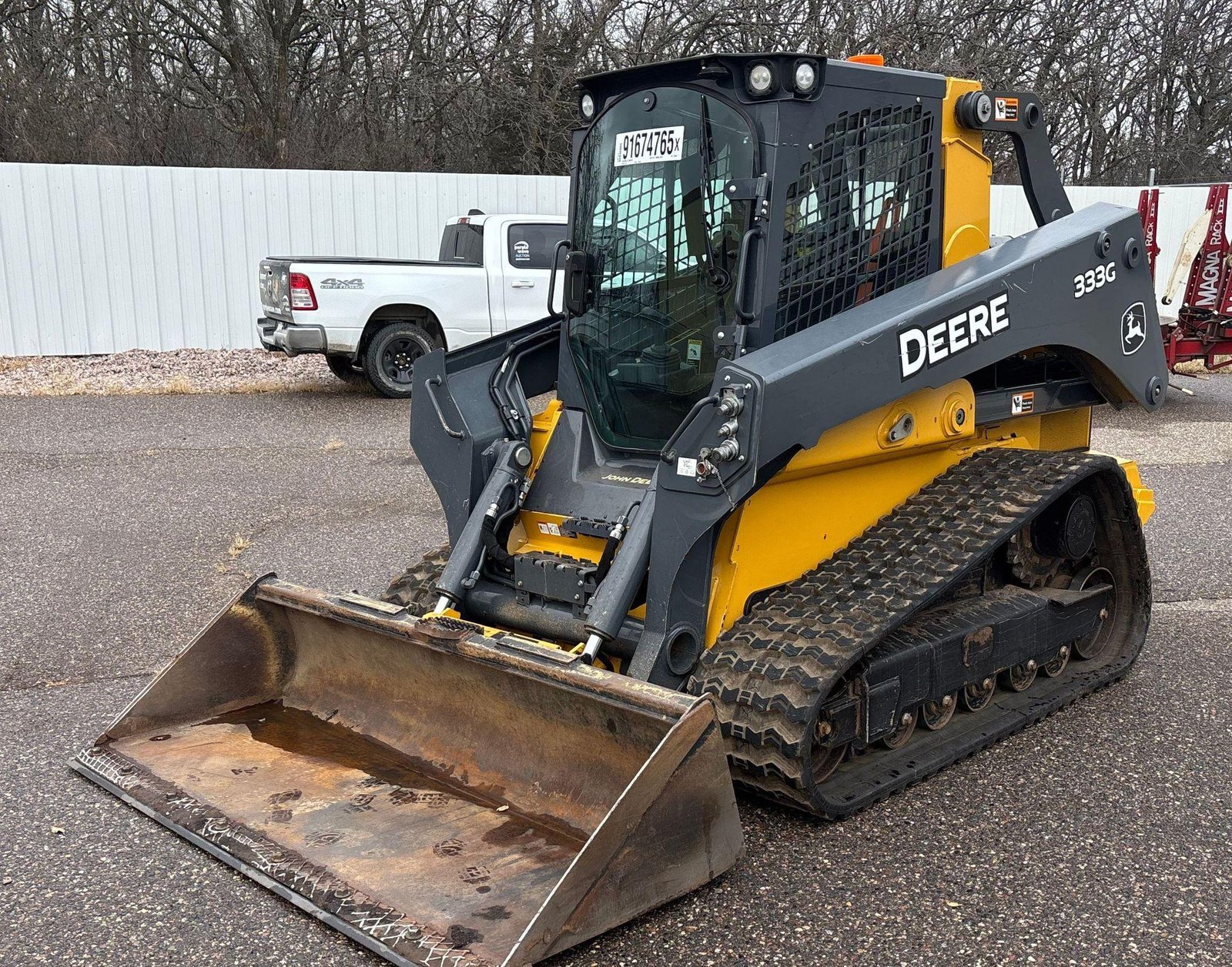 2017 John Deere 333G – 793 Hours Low-hour John Deere 333G powered by a 4-cylinder Yanmar diesel engine with hydrostatic transmission and two-speed travel. Built for strength, stability, and high hydraulic performance.Enclosed OROPS cab with heat & A/C, backup camera, hand controls, pattern changer, and electronic monitoring system for precise operation. Equipped with auxiliary hydraulics, auxiliary electrical outlet, hydraulic quick coupler, and counterweights.