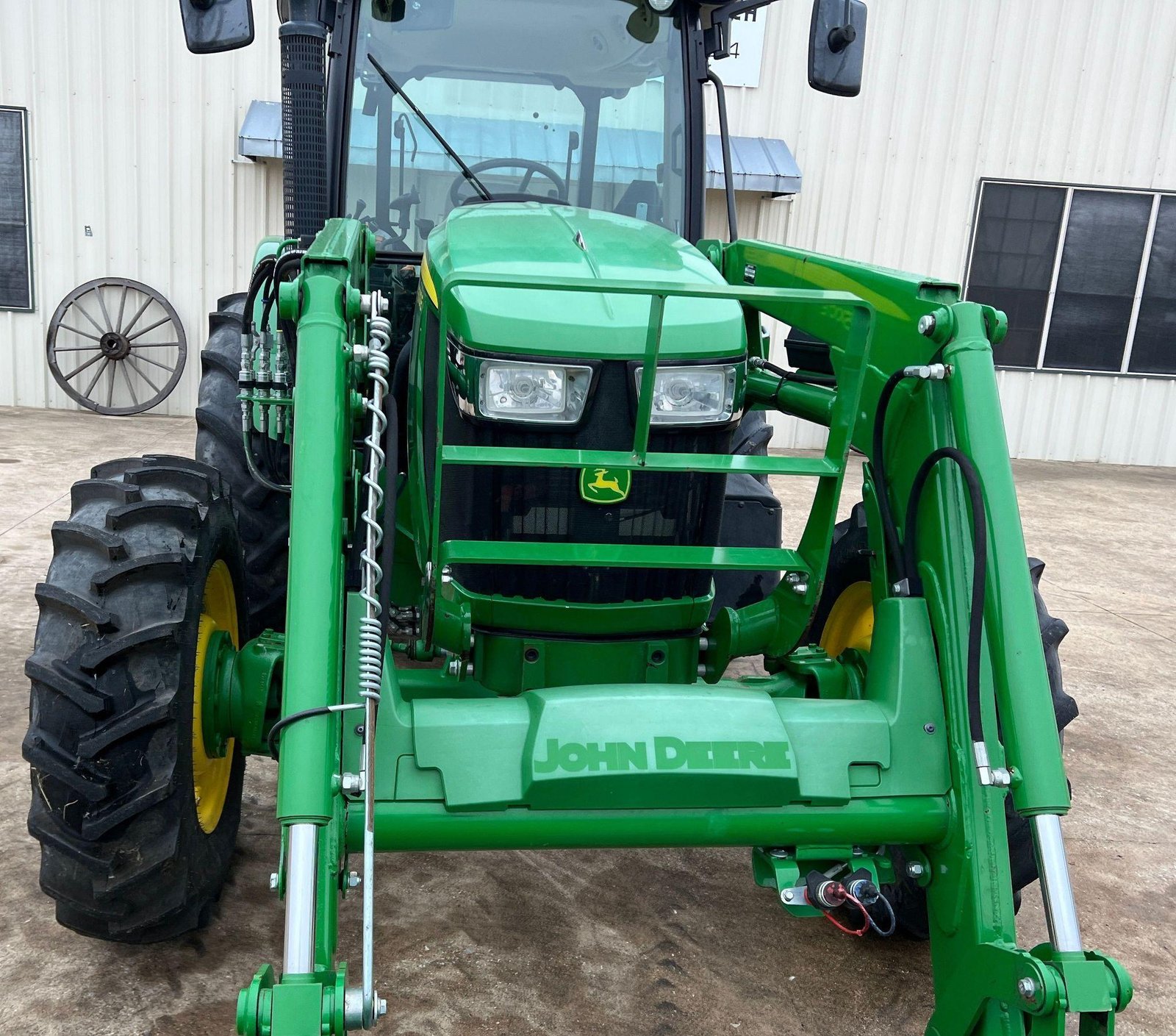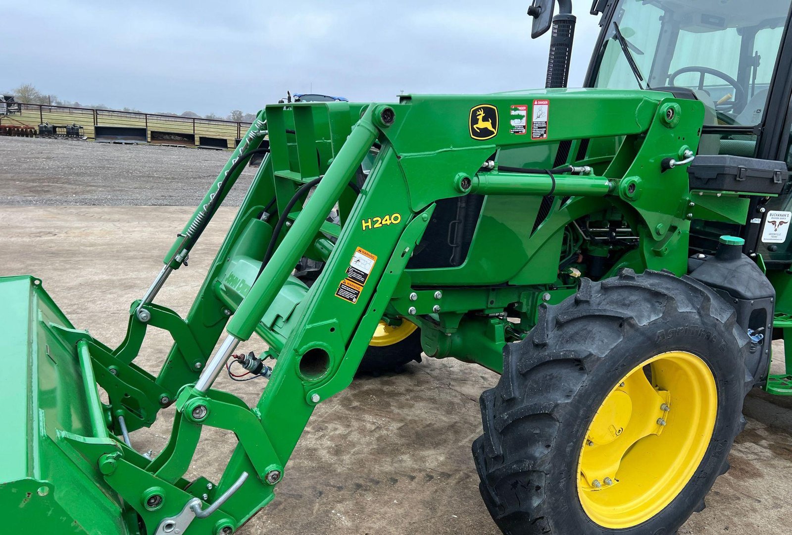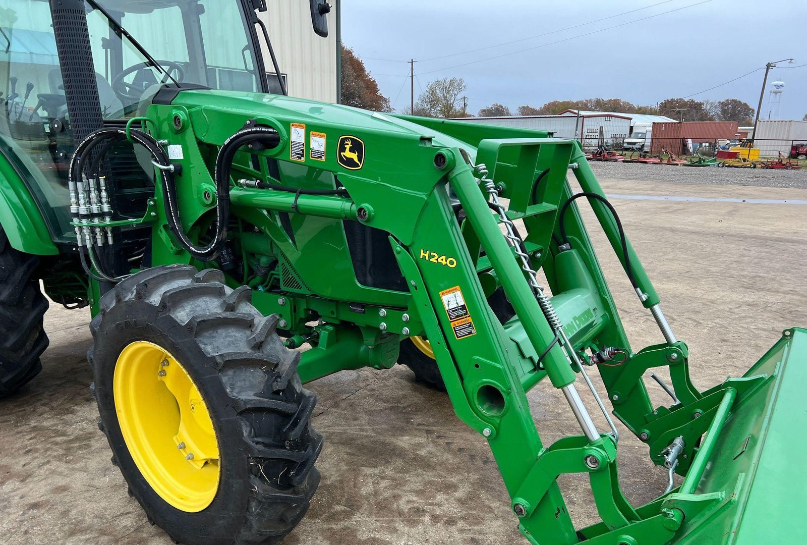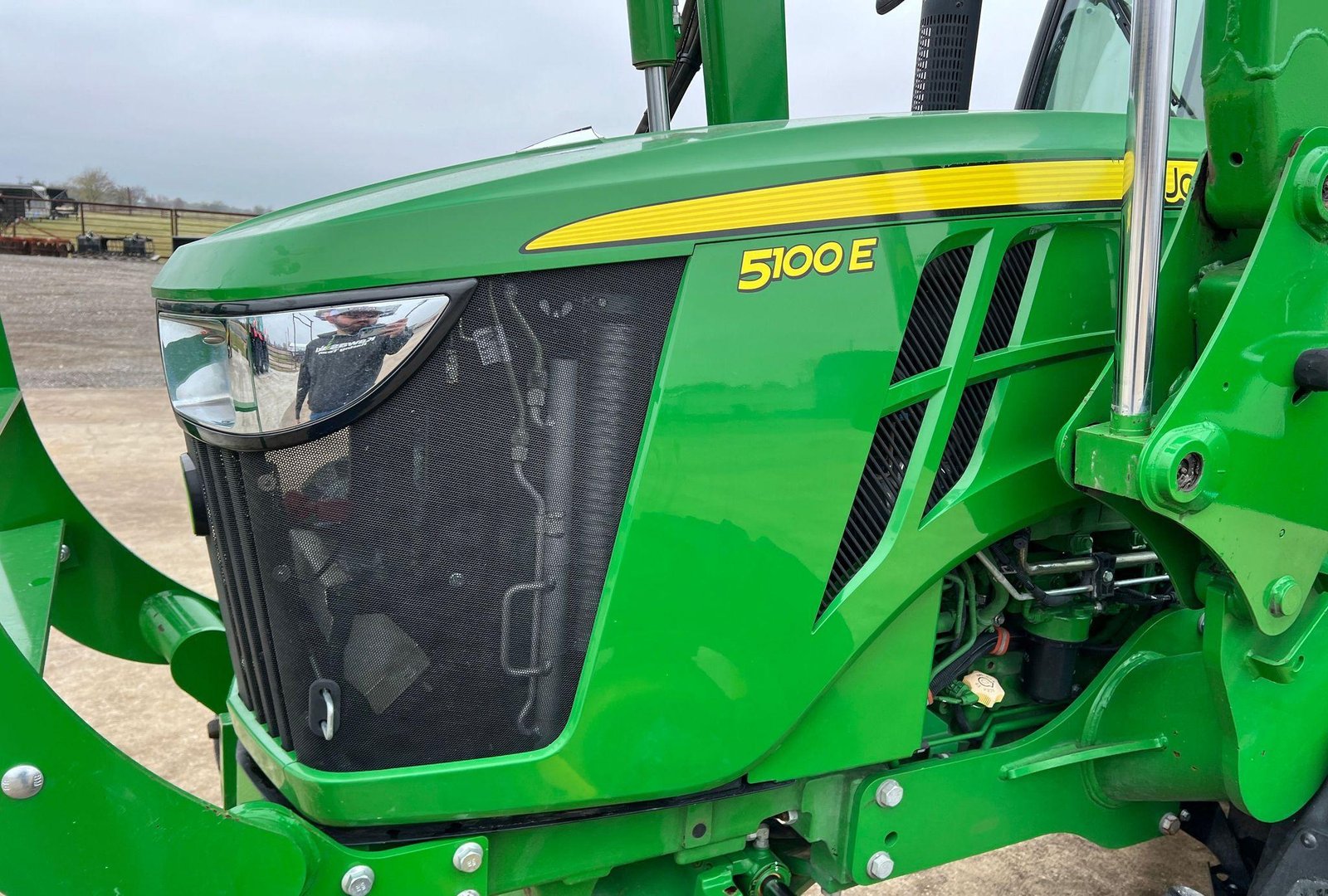 2017 John Deere 5100E MFWD – 1275 Hours Dependable John Deere 5100E powered by a 4-cylinder diesel engine with 12F/12R synchro transmission and left-hand reverser for smooth direction changes during loader work. Enclosed cab with heat & A/C for operator comfort. Equipped with 540 PTO, three-point hitch with top link, seven-pin outlet, 1 front and 3 rear hydraulic remotes.