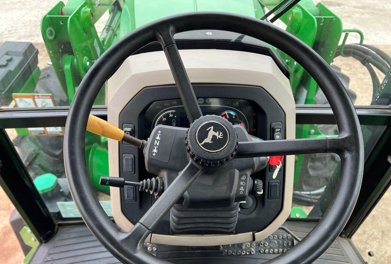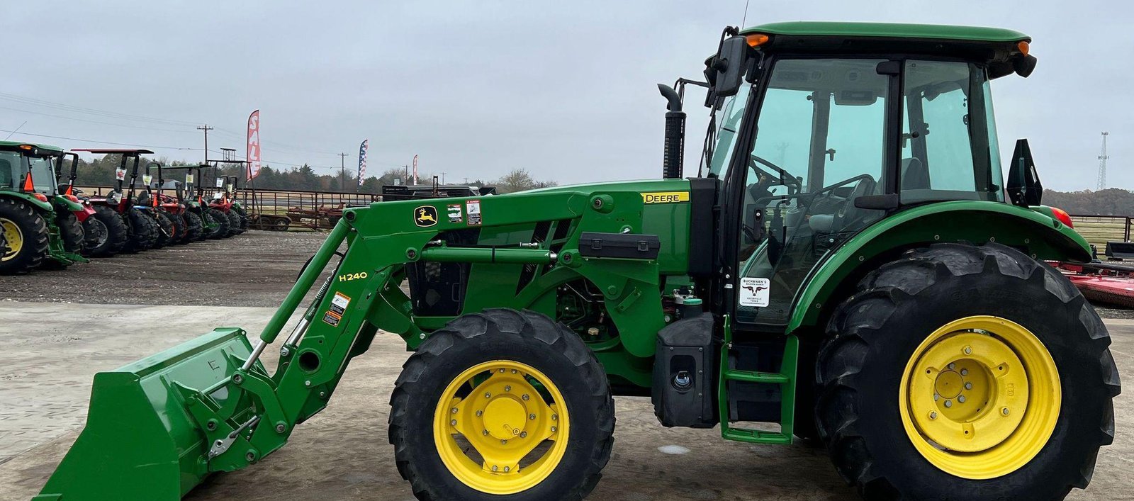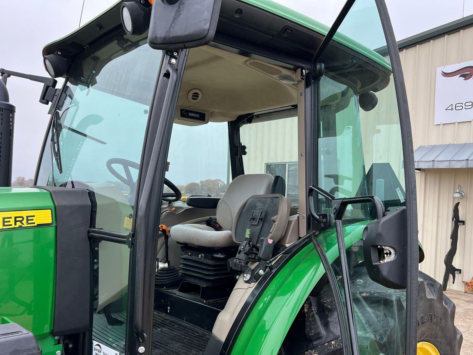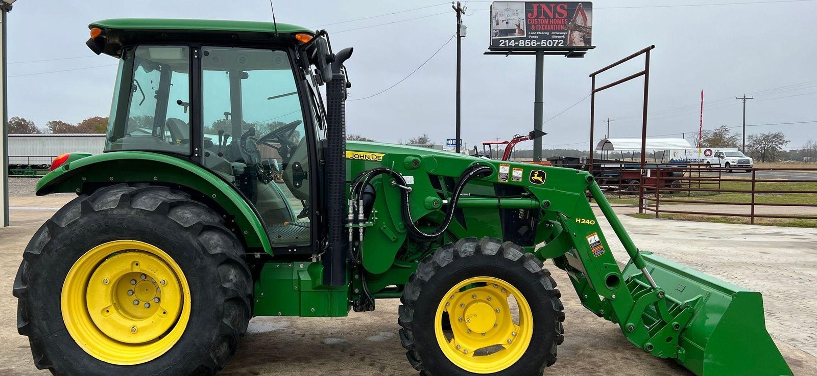 2017 John Deere 5100E MFWD – 1275 Hours Dependable John Deere 5100E powered by a 4-cylinder diesel engine with 12F/12R synchro transmission and left-hand reverser for smooth direction changes during loader work. Enclosed cab with heat & A/C for operator comfort. Equipped with 540 PTO, three-point hitch with top link, seven-pin outlet, 1 front and 3 rear hydraulic remotes.