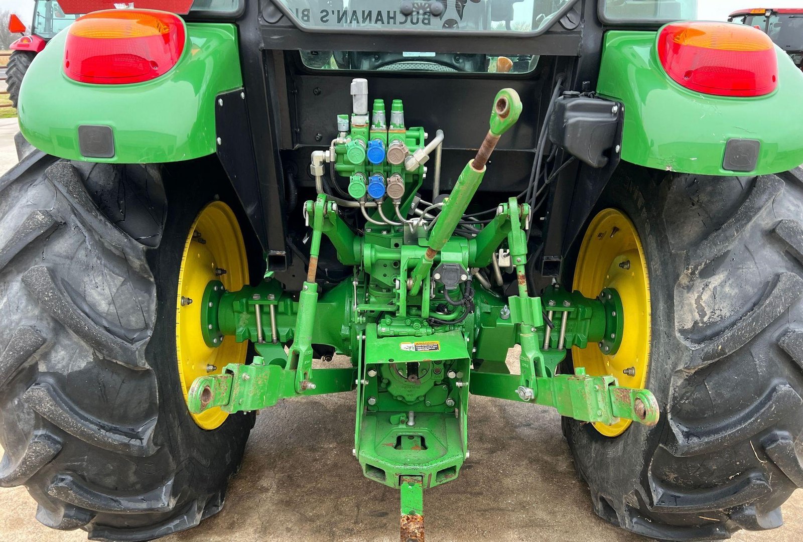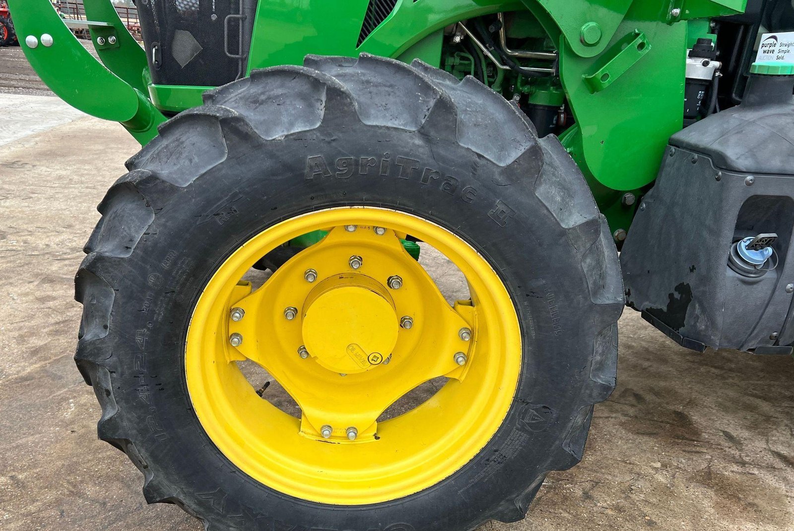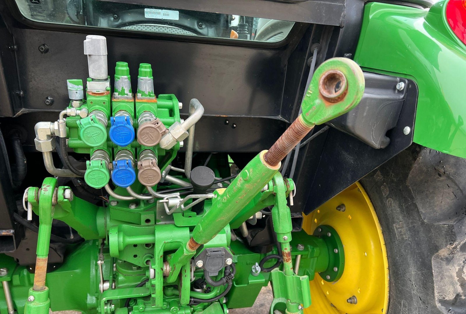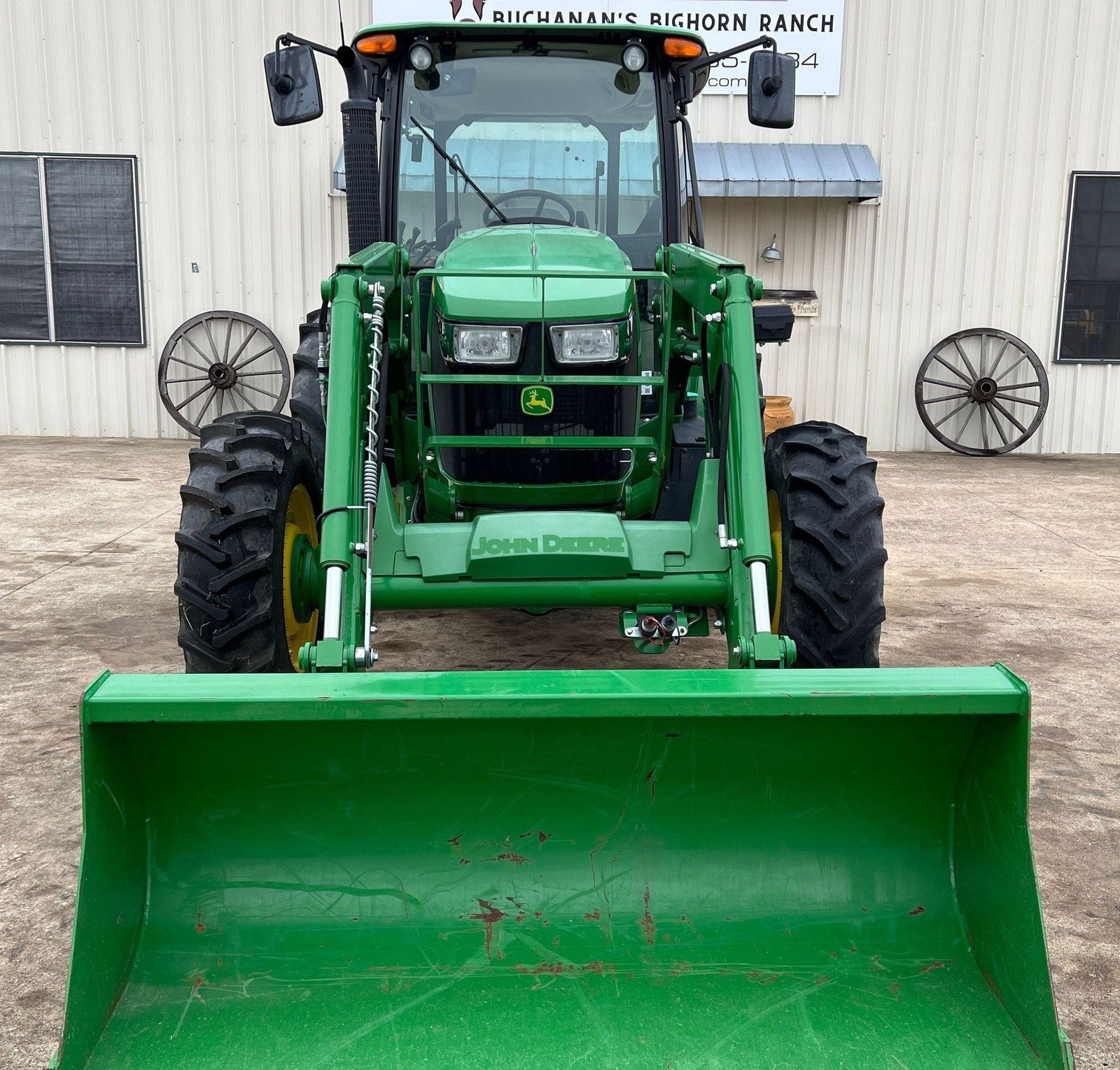 2017 John Deere 5100E MFWD – 1275 Hours Dependable John Deere 5100E powered by a 4-cylinder diesel engine with 12F/12R synchro transmission and left-hand reverser for smooth direction changes during loader work. Enclosed cab with heat & A/C for operator comfort. Equipped with 540 PTO, three-point hitch with top link, seven-pin outlet, 1 front and 3 rear hydraulic remotes.