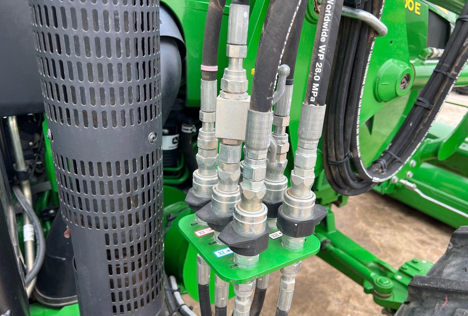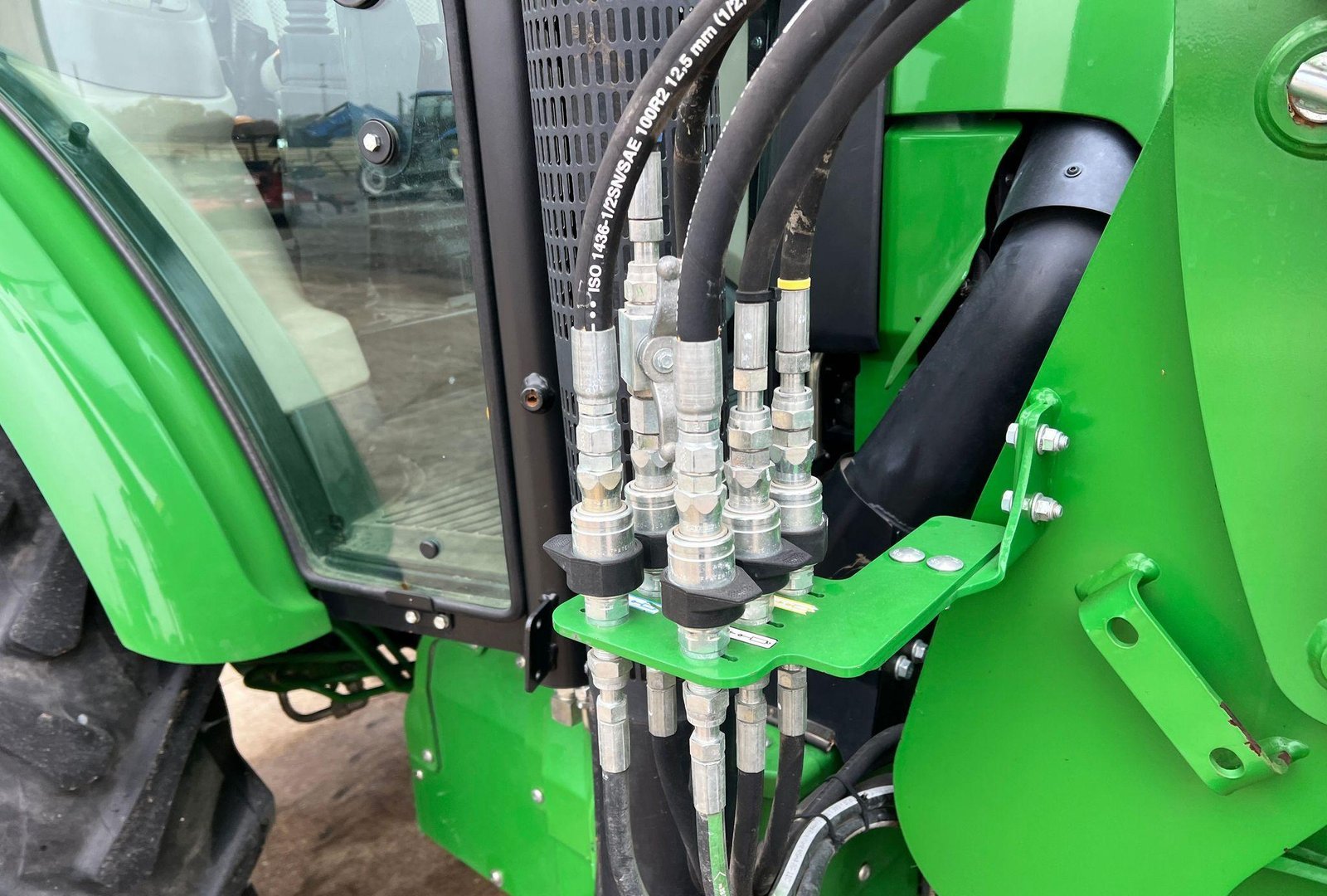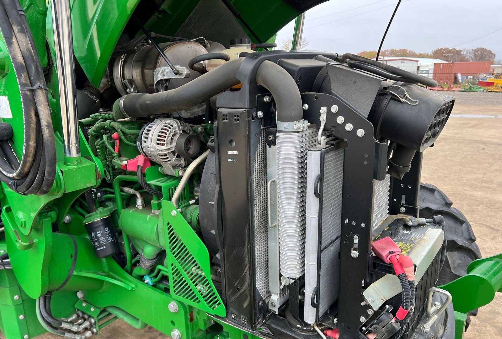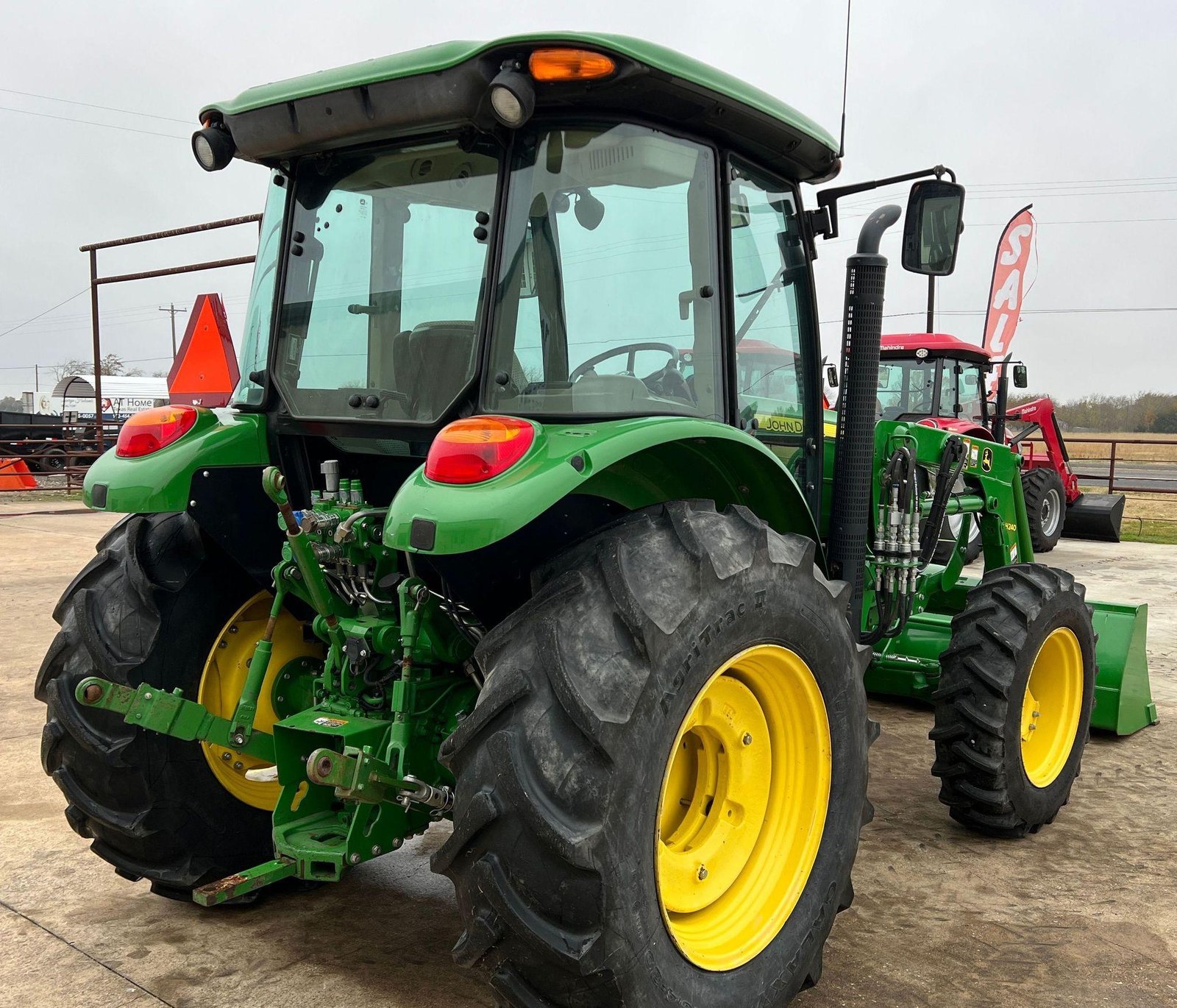 2017 John Deere 5100E MFWD – 1275 Hours Dependable John Deere 5100E powered by a 4-cylinder diesel engine with 12F/12R synchro transmission and left-hand reverser for smooth direction changes during loader work. Enclosed cab with heat & A/C for operator comfort. Equipped with 540 PTO, three-point hitch with top link, seven-pin outlet, 1 front and 3 rear hydraulic remotes.